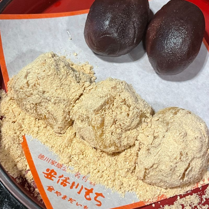 私はたぬきそば、夫はお雑煮(今月でおしまいらしいです)、息子は、おもち付のもりそばセットを注文しました。静岡だからか、出汁の味が濃くて美味しかったです。温かい安倍川餅もとても美味しかったです。