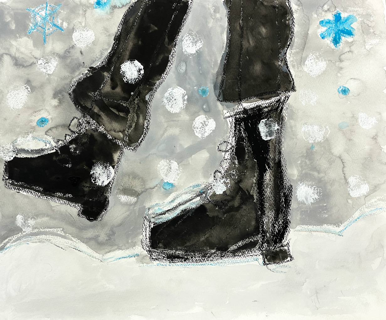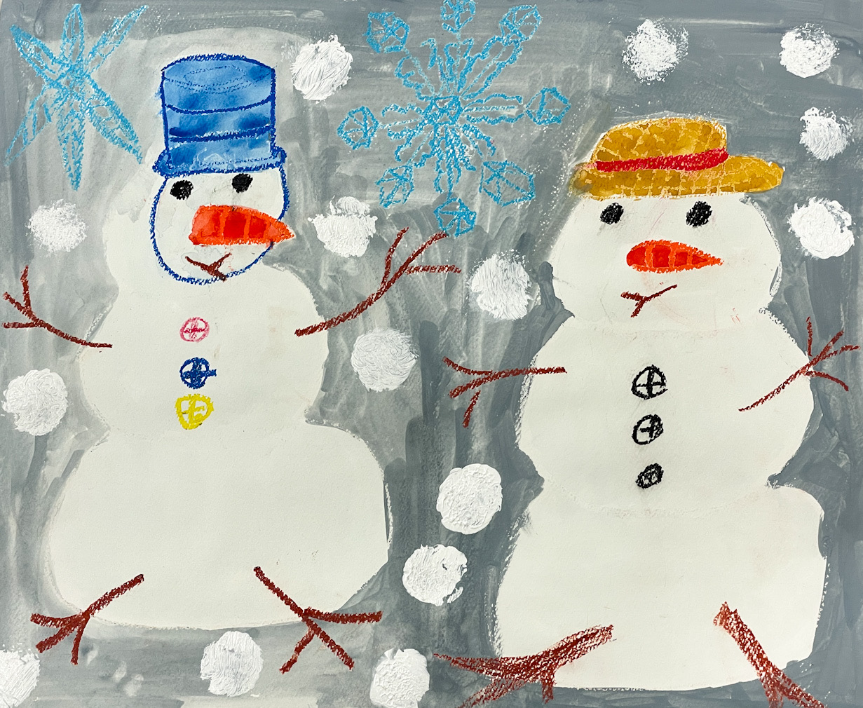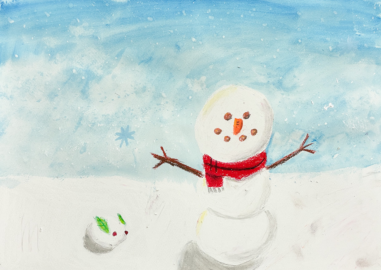 午前中に来た生徒は、雪の絵を描きました。
