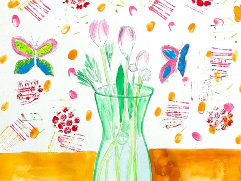 最近のアトリエでは、チューリップの絵を描いたり、