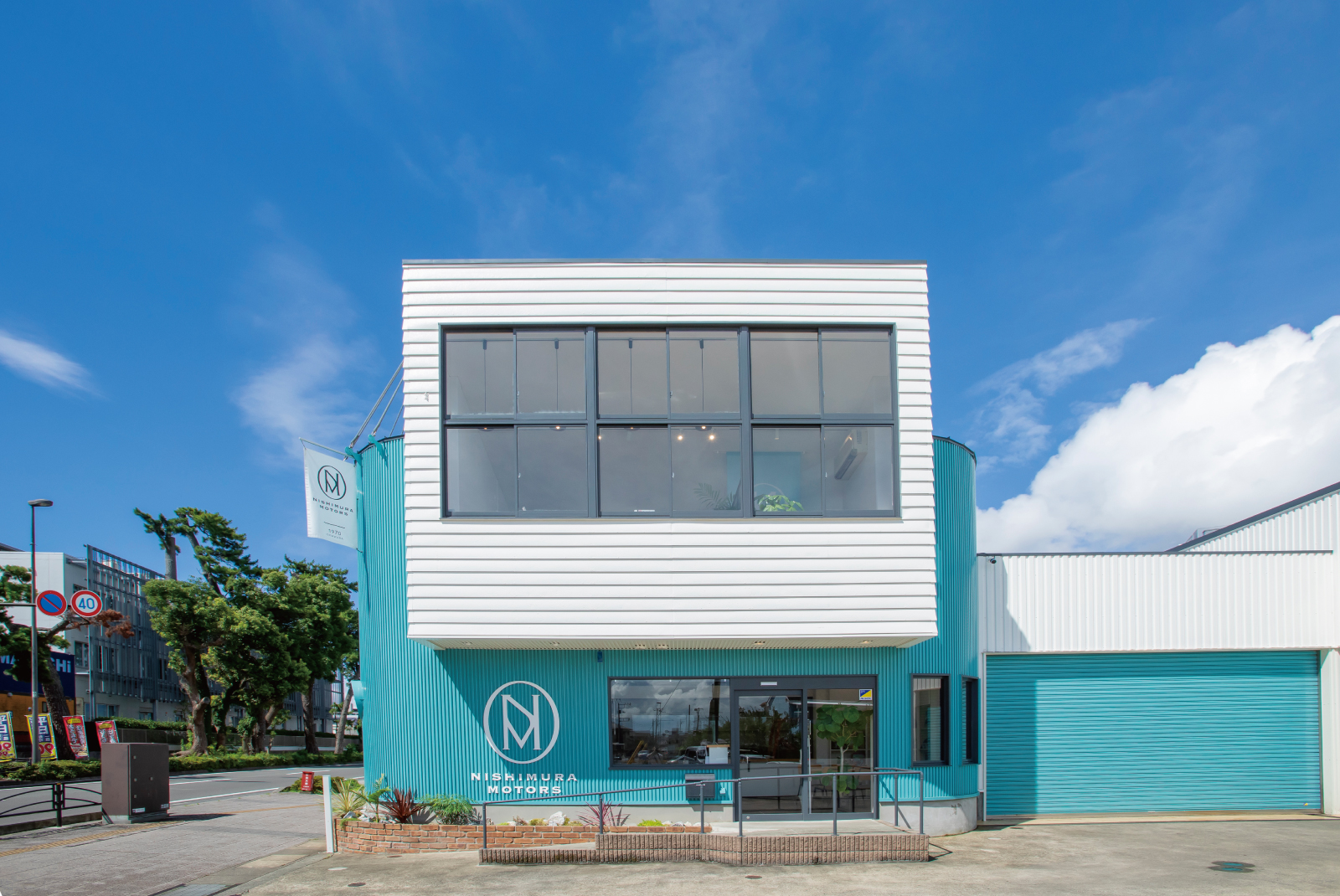 50周年を機に西村社長の新たな一手としてオープンすることになった酒匂工場。西村モータースの「50年の振り返りを未来に繋げる発信基地」をコンセプトに、ネーミング、ロゴ、イメージカラー、店鋪のデザインからインテリアなど、トータルでのブランディングデザインを手掛けさせていただきました。