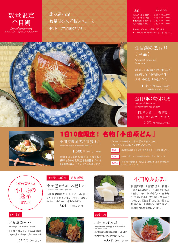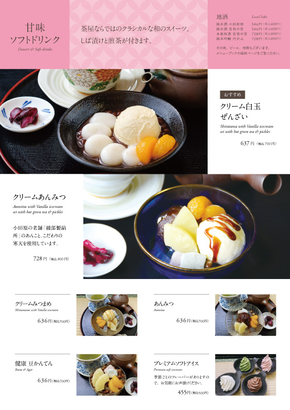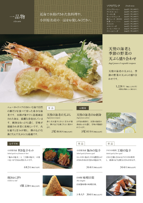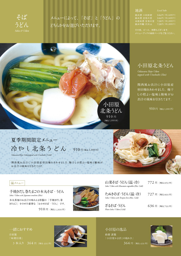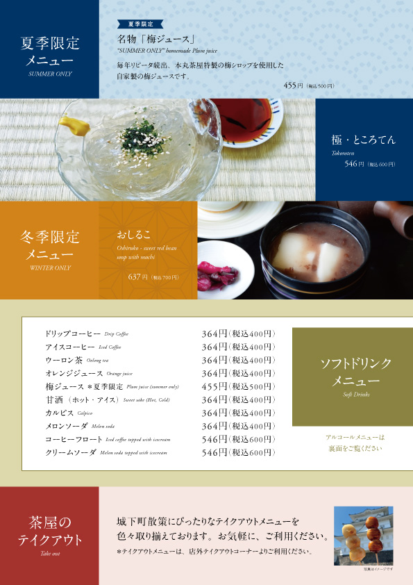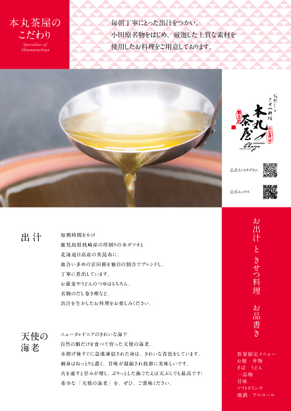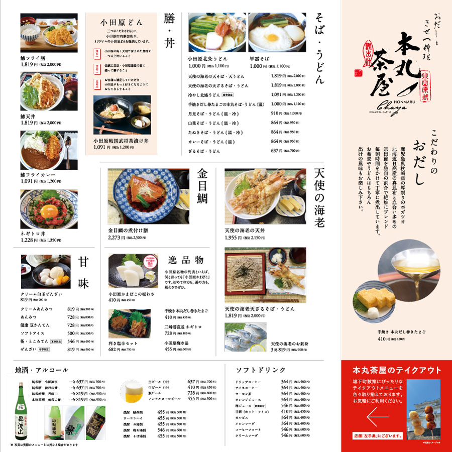 2021年に弊社でブランディングを担当させていただき、リニューアルオープンした、小田原 本丸茶屋様の店内メニューと、店頭用メニュー看板をデザインいたしました。