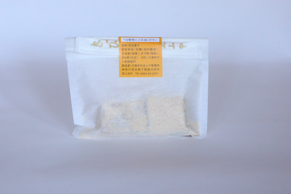 ゑふや様のきび餅は、店頭で販売している箱入りの商品の他に、旅館でお客様を迎えするための部屋置き用お菓子として採用され、個装されたものがあります。今回は、その部屋置き用のパッケージのデザインをリニューアルさせていただきました。