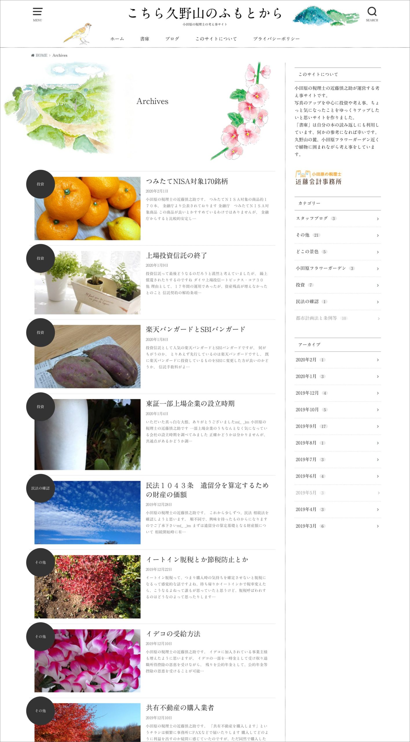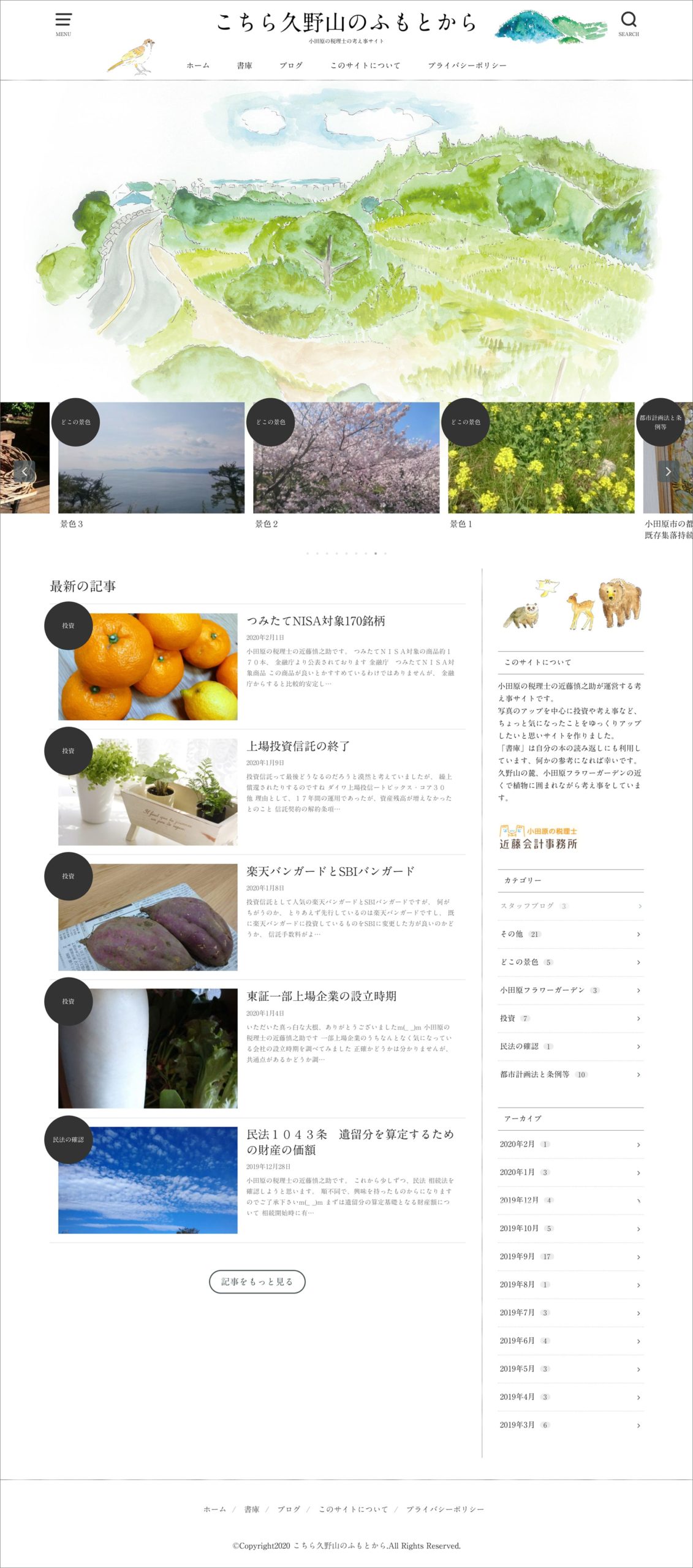 小田原市の近藤会計事務所のサイトです。顧客の方へ「日々考えていることを発信したい」というご依頼から、サイト「こちら久野山のふもとから」を制作いたしました。