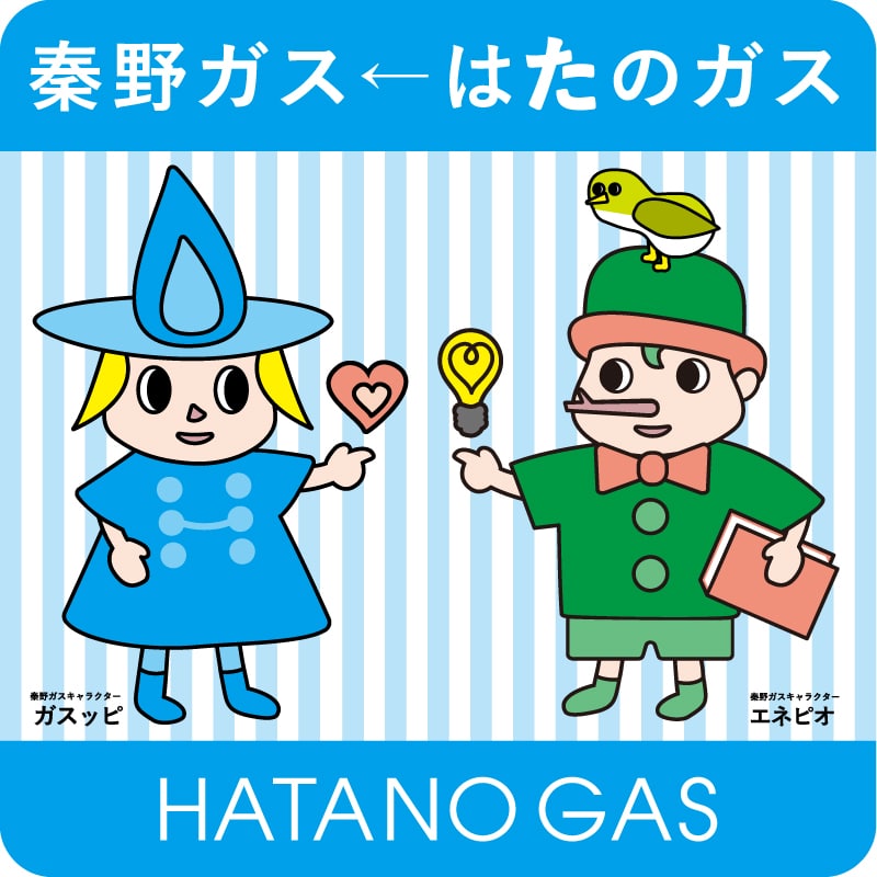 秦野ガス CLIENT:秦野ガス株式会社 車両ステッカー 秦野ガス様の車両に貼るステッカーを弊社でデザインしたガスッピとエネピオを使って制作いたしました。 コメントが違うものを25点 制作いたしました。