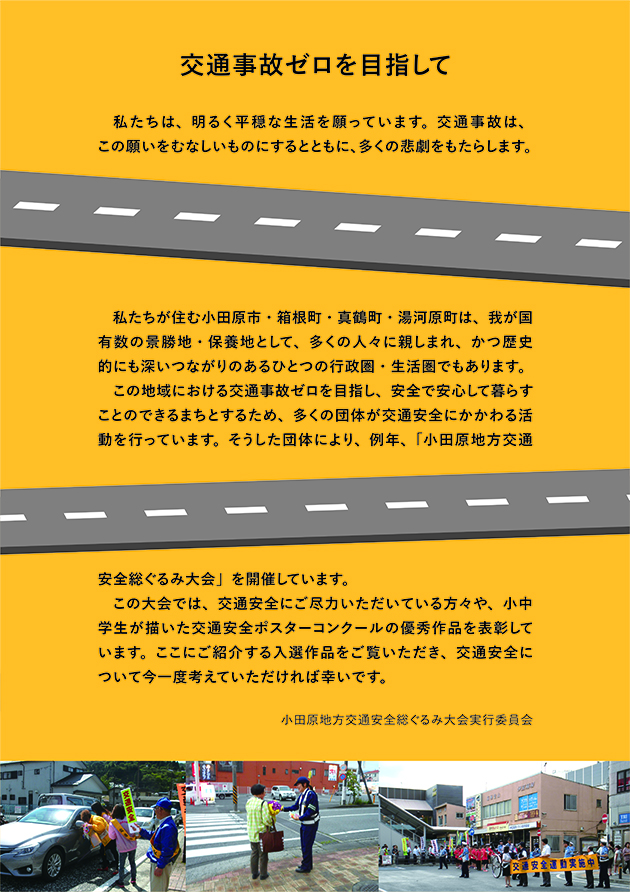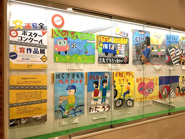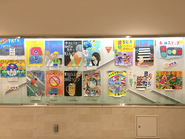 小中学生が描いた交通安全ポスターコンクールの優秀作品の展示です。