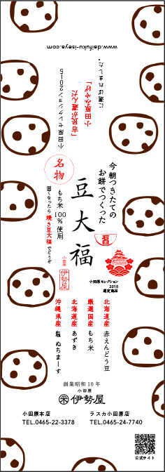 伊勢屋さんの看板商品「豆大福」の巻き紙とのぼりの