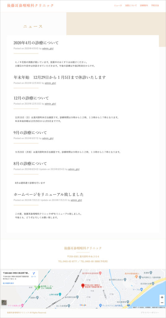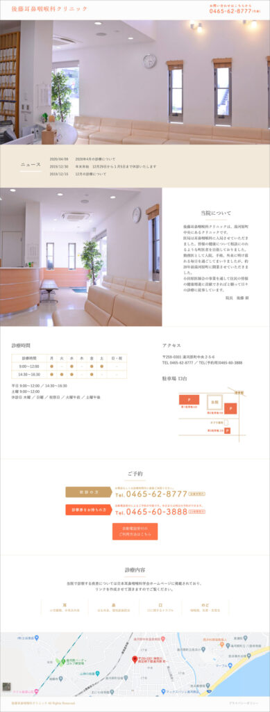 湯河原町の「後藤耳鼻咽喉科クリニック」様のホームページをリニューアルさせていただきました。
